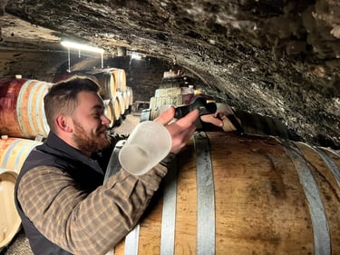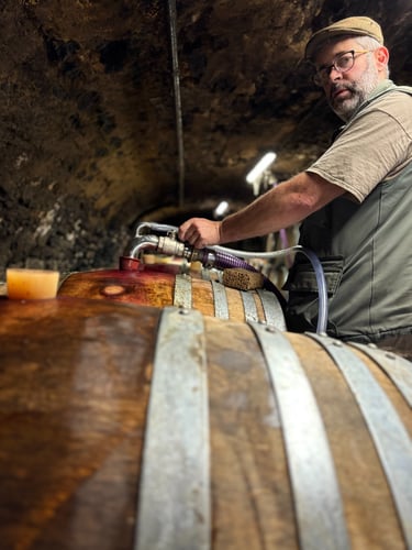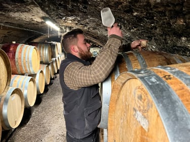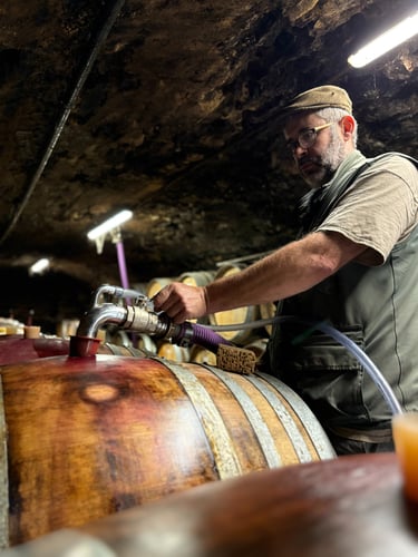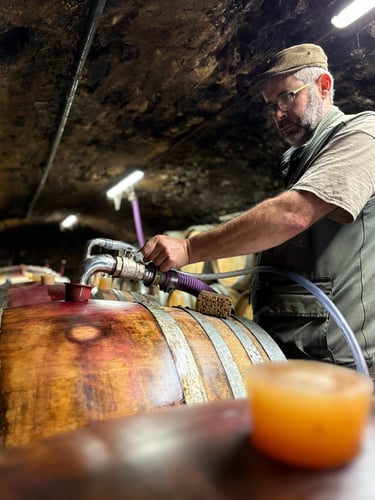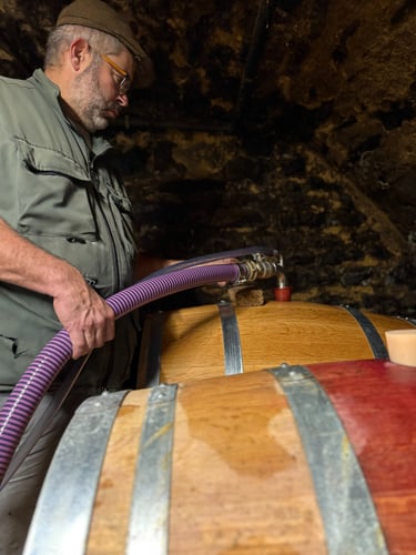 Mes premières années sur le domaine se passent à mi-temps. Durant cette période, la surface du domaine, de 4 hectares, n'est pas suffisante pour s'installer à temps plein. Le millésime 2021 est décisif : je décide de quitter ma deuxième activité pour me consacrer pleinement à mes vignes ainsi qu'à mes vinifications et à l'élevage de mes vins. De nombreux paramètres ont été perfectionnés et approfondis.